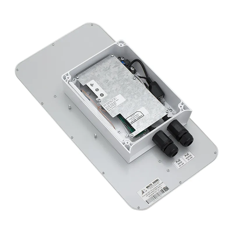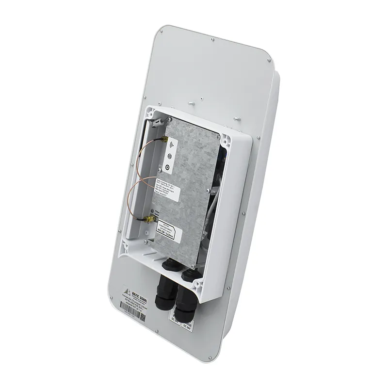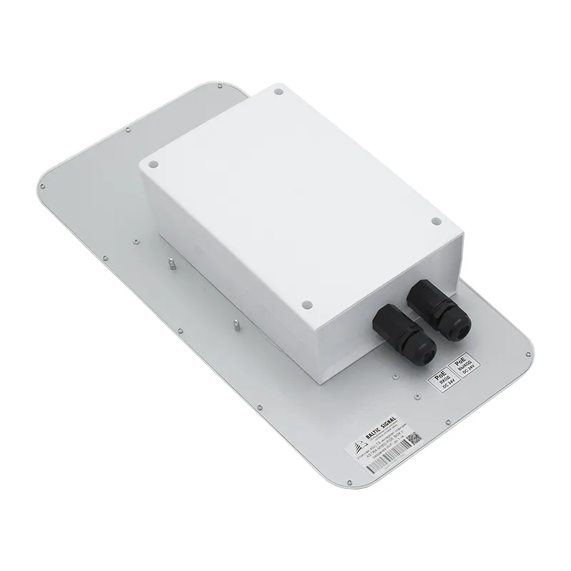 - Направленная панельная антенна с усилением 10–15 дБи. Роутер и модем установлены в гермобоксе антенны, которая может принять сигнал сотовой связи даже на большом удалении от ближайшей сотовой вышки (до 15 км). Антенна поддерживает все операторские частоты в России;