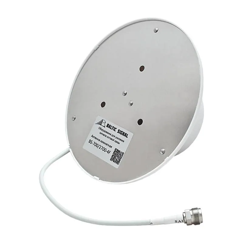 Антенна BS-700/2700-4F — потолочная антенна с широким частотным диапазоном 700–2700 МГц и коэффициентом усиления 3-5 дБи. Данная модель поддерживает наиболее популярные стандарты сотовой связи, включая GSM-900, GSM-1800, UMTS-2100 и LTE2600.