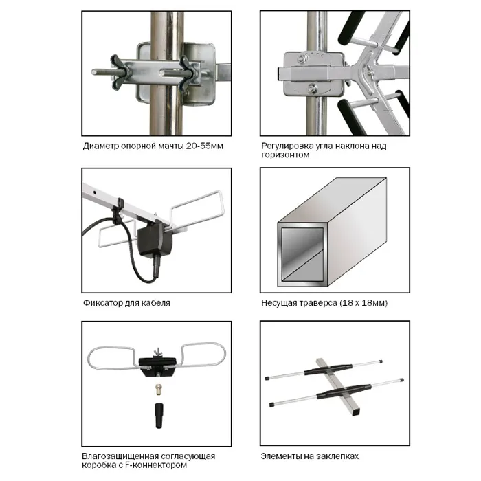Антенна изготовлена из коррозионностойкого полированного алюминия и морозоустойчивого пластика, на высокоавтоматизированном производстве, что обеспечивает полную повторяемость параметров от изделия к изделию.