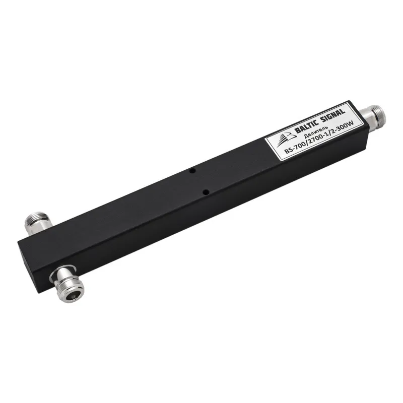 BS-700/2700-1/2-300W — делитель ВЧ-сигнала на две равные части. Этот сплиттер поддерживает широкий частотный диапазон 700–2700 МГц и рассчитана на высокую входную мощность — до 300 Вт. В отличие от других моделей, BS-700/2700-1/2-300W характеризуется низким уровнем интермодуляционных искажений: показатель IMP3 равен всего -150 дБн.