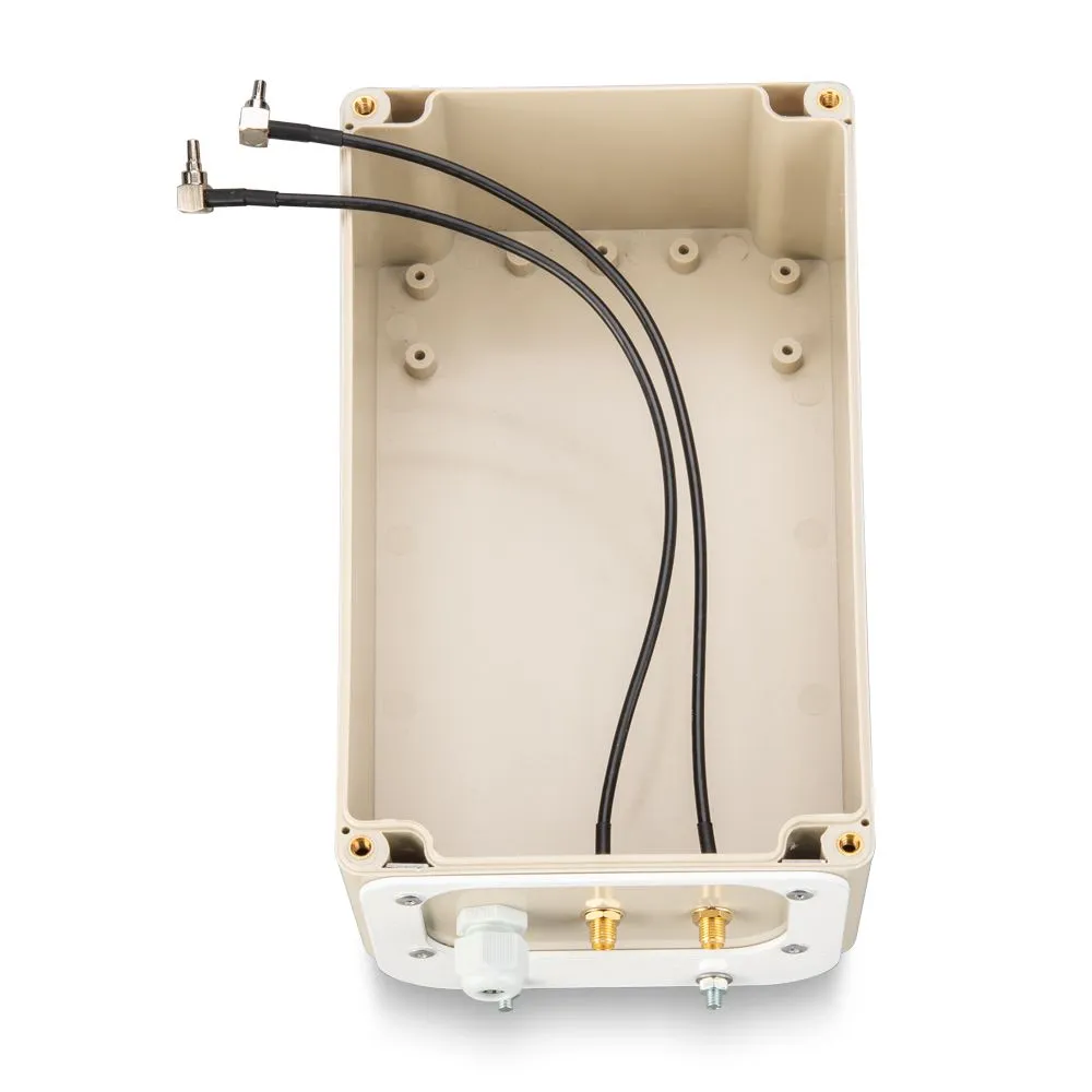 Гермобокс для крепления на кронштейне параболических антенн 3G, 4G и Wi-Fi MIMO с коэффициентами усиления 21, 24 и 27 дБ. Благодаря этому устройству модем и роутер размещаются рядом с антенной, что минимизирует потерю сигнала в кабеле. Герметичный корпус гарантирует надёжное крепление оборудования и защищает его от воздействия плохой погоды.