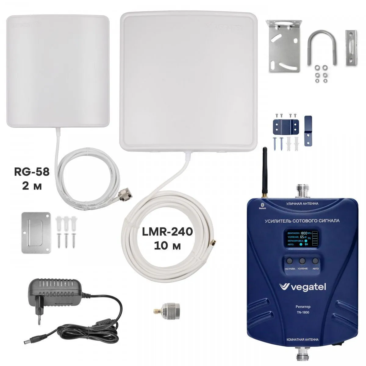 Комплект VEGATEL TN-1800 усиливает 2G и 4G сигналы всех сотовых операторов на частоте 1800 МГц и решает проблему нестабильного мобильного интернета и сотовой связи на объектах до 350* кв.м: в квартирах, домах и коммерческих строениях.