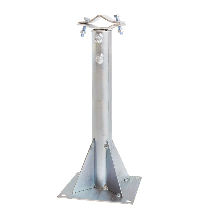 Телескопический кронштейн изготовлен из стальной трубы, покрытие нанесено методом холодного цинкования. Основание усиленно дополнительными четырьмя ребрами.