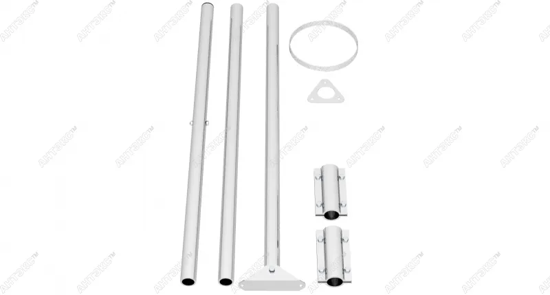 Мачта антенная M45D3 предназначена для установки антенн. Мачта состоит из трех колен, представляющих собой круглую тонкостенную (1 мм) стальную трубу длиной 1500 мм, диаметром 38 мм и покрытую порошковой краской. В качестве оттяжек применена стальная, оцинкованная проволока диаметром 1,6 мм. Детали "юбка" и "пятка" изготовлены из 1,5 миллиметровой стали и покрыты порошковой краской. Стык колена выполнен из алюминиевого профиля АД31Т.