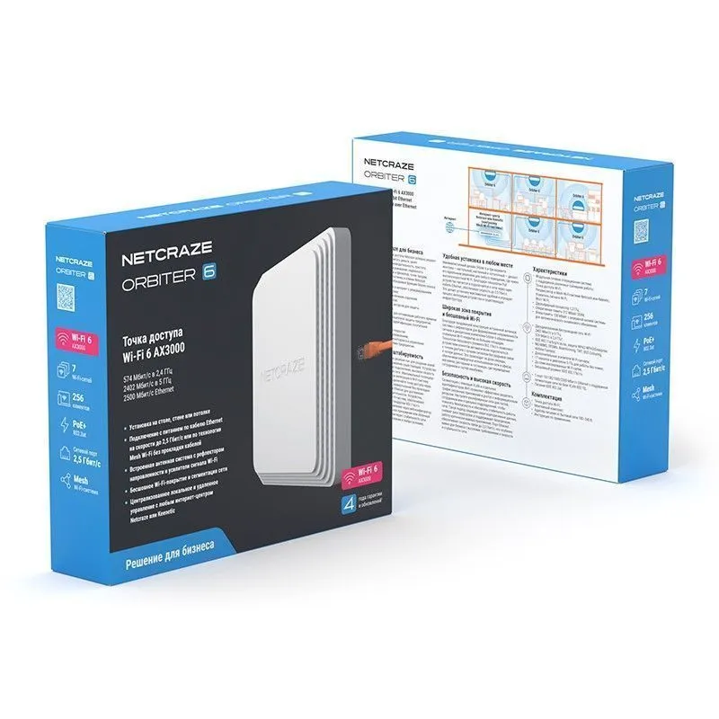 Netcraze Orbiter 6 — высокопроизводительная точка доступа и интернет-центр, созданная для обеспечения стабильного покрытия Wi‑Fi в больших домах, офисах и коммерческих помещениях.