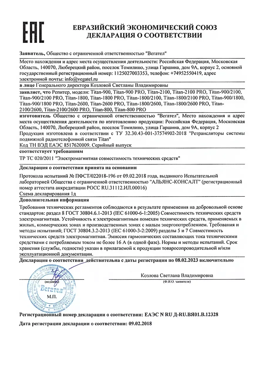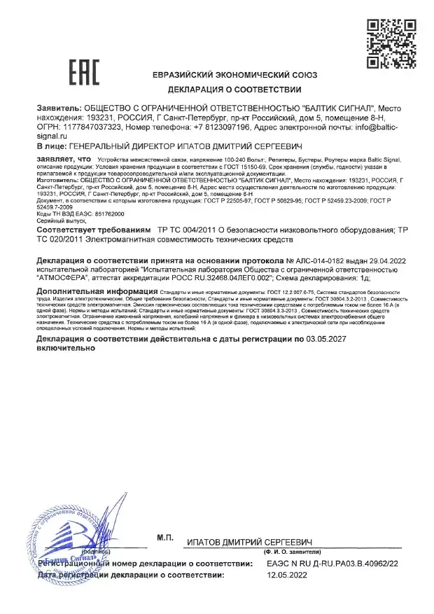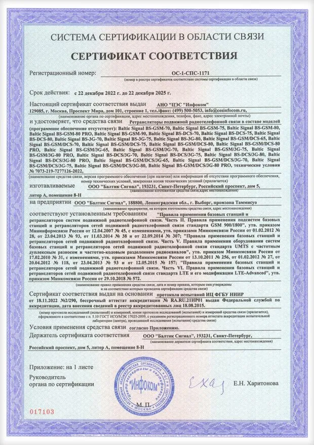 Покупая оборудование в нашем магазине вы можете быть уверены, что все репитеры прошли необходимую сертификацию и соответствуют всем нормам современного российского законодательства.
